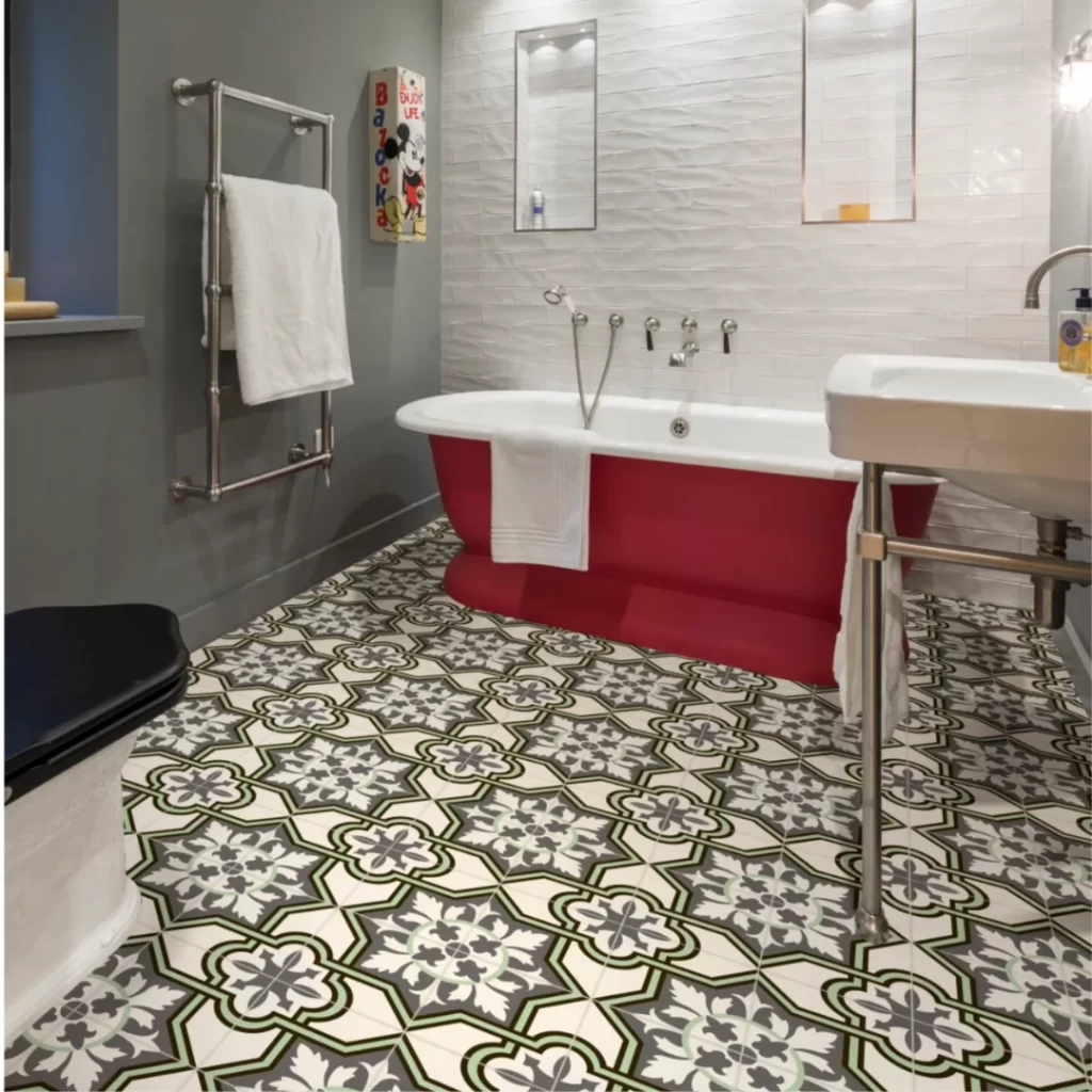 Discover the timeless elegance and calming beauty of Belgravia Green 22.5×22.5, a porcelain stoneware tile. Featuring a captivating blend of off-white, grey and green, these tiles bring a refreshing atmosphere and a touch of Mediterranean flair to any room.
