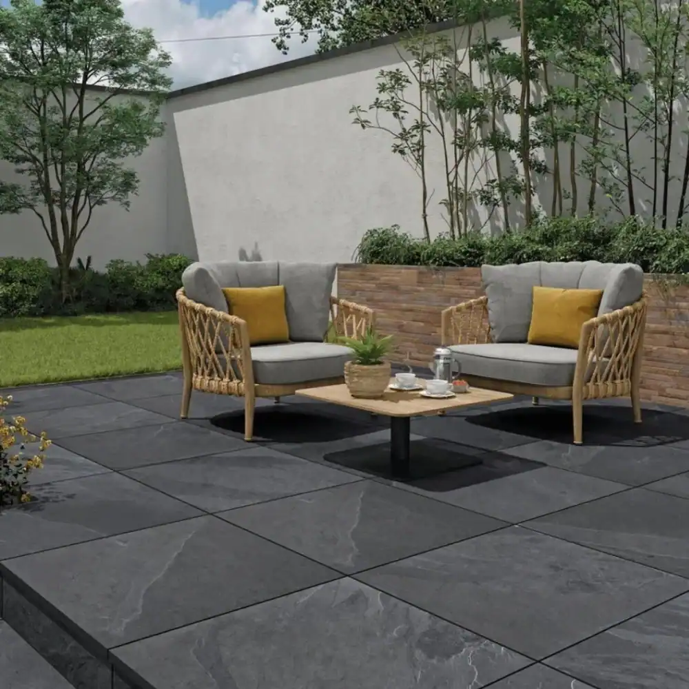 This black slate effect porcelain tile is ideal for interiors seeking character, elegance and visual impact.