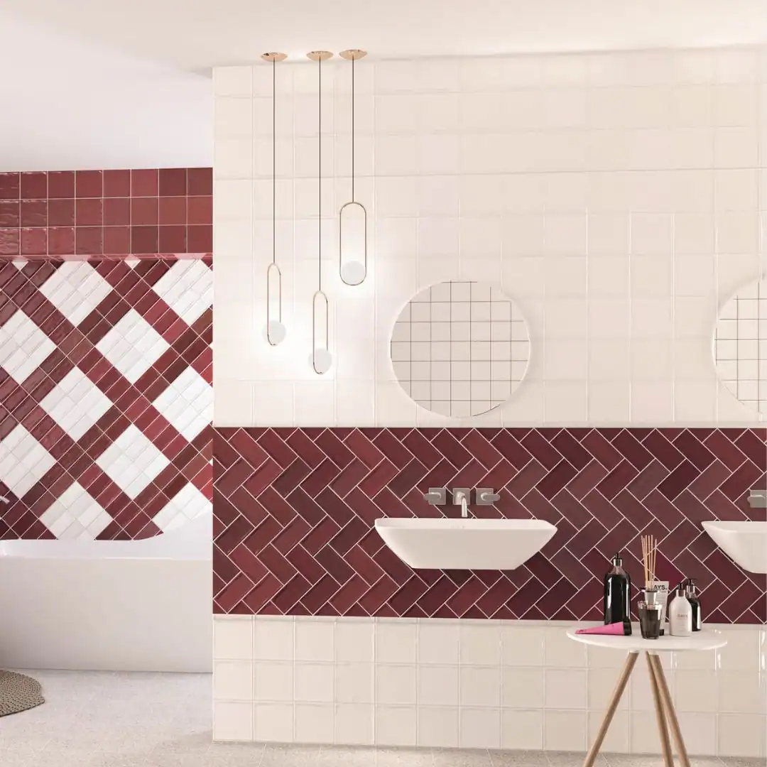 With its rich tone and luminous finish, Chic Carmin is a striking deep red wall tile for standout interiors. Choosing this deep red wall tile adds intensity, style and a contemporary touch.