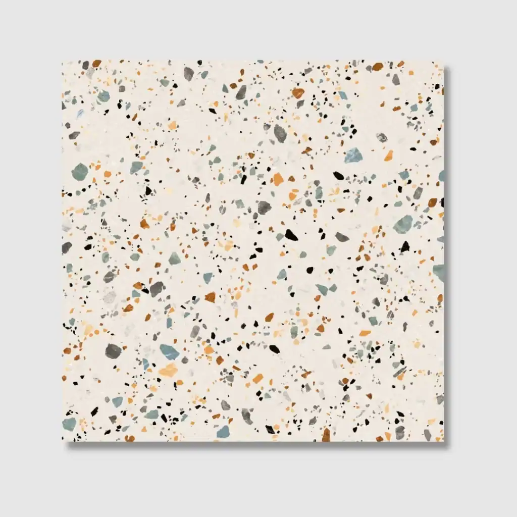 Colorado is a stunning 60×60 cm porcelain tile with a terrazzo effect, featuring an off-white cream base dotted with various vibrant colours like blue, yellow, and orange. This lively blend of hues creates a playful yet refined look, making Colorado perfect for both walls and floors.