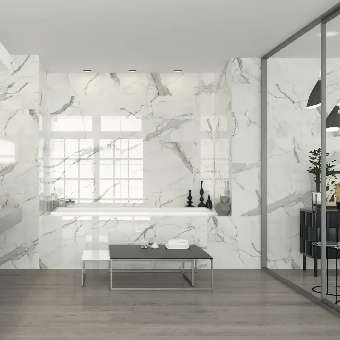 Monarch Gloss 30×60 is perfect for bathrooms, kitchens, living areas or even commercial spaces. Its porcelain body offers high durability, making it suitable for daily use while keeping a premium look. Use it to create a light-filled, high-end atmosphere without the cost or maintenance of real marble.