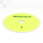 Diamond resin polishing pads with Velcro coupling for dry or wet grinding and polishing of porcelain tiles and natural stone. Use with a flexible angle grinder