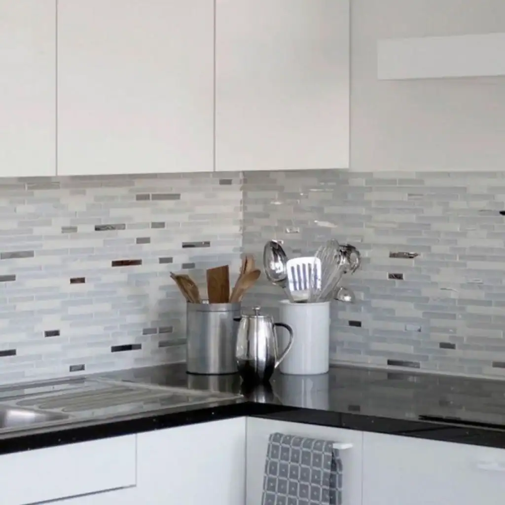 Ideal for walls in kitchens, bathrooms, or feature areas, this mosaic tile enhances both contemporary and minimalist interiors. The subtle variation in tone and material gives it a sophisticated finish that pairs beautifully with stone-effect tiles, marble surfaces, or gloss cabinetry. Also available in Reflection Black and Reflection Grey for coordinated designs or contrasting combinations.