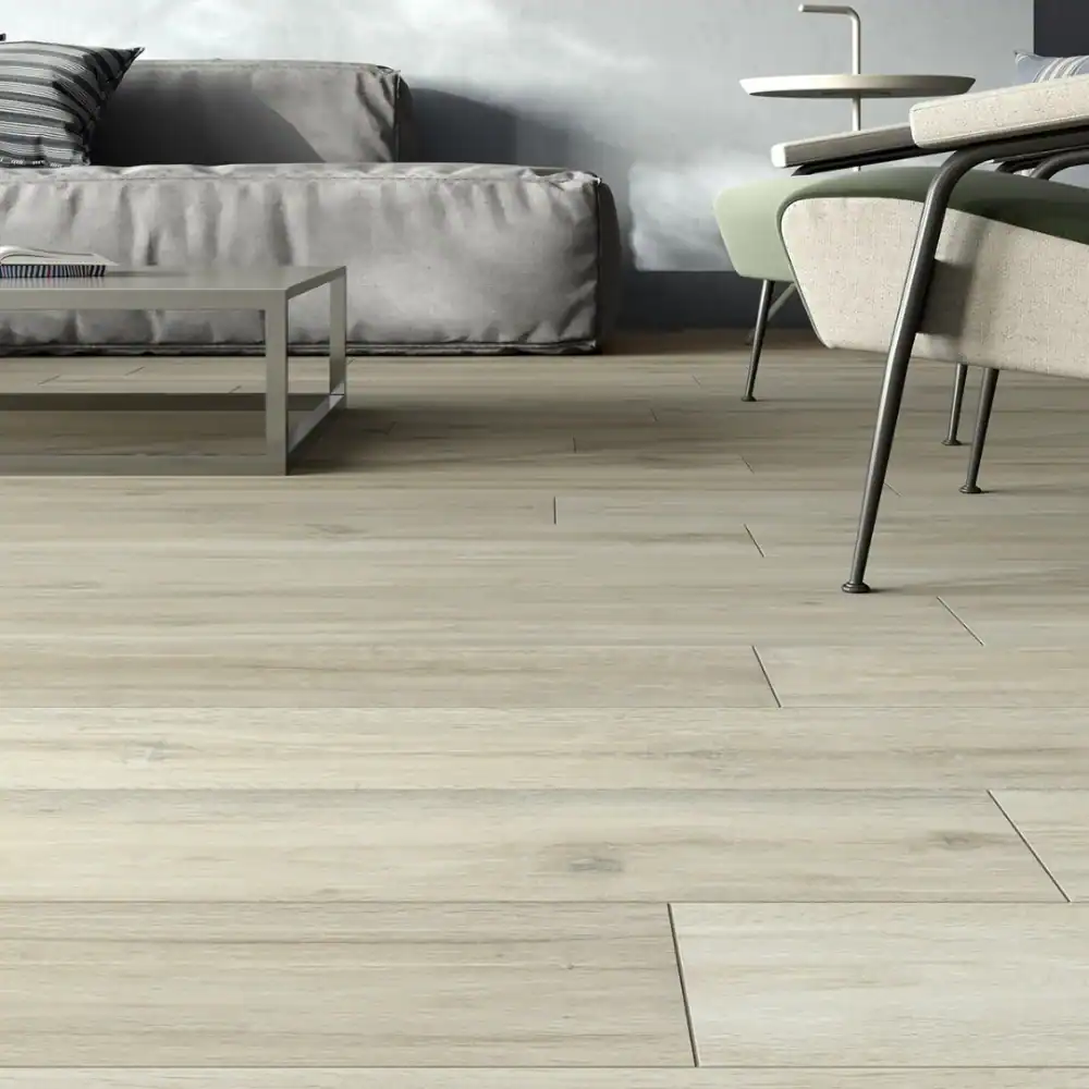 The Westwood White tile features a soft light-wood tone that brightens interiors while keeping a natural, organic feel. Made from porcelain, it includes a realistic woodgrain texture and a clean matt finish that complement minimalist, Scandinavian, and modern rustic design schemes. The 19.5×120 cm plank is ideal for expanding visual space and creating a calm, airy atmosphere.