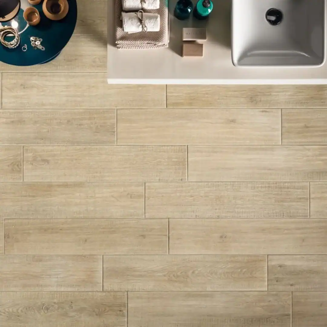 The matt finish enhances the warm oak tone and gives the surface a soft, natural appearance. Its refined variation makes it difficult to distinguish from real timber. The tile suits kitchens, living rooms and open plan spaces with ease.